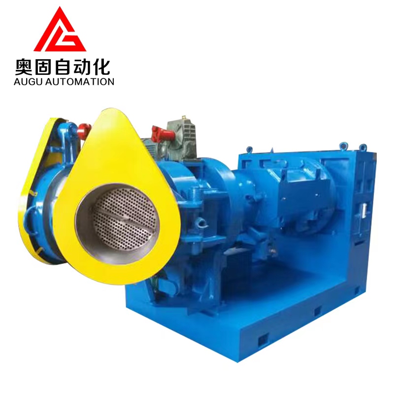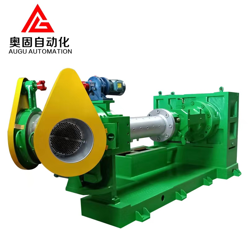 Augu -kumisuodattimen suulakepuristin on innovatiivinen suulakepuristusratkaisu, joka on suunniteltu vastaamaan kumiteollisuuden erikoistuneita vaatimuksia. Tämä kone on erittäin mukautuva ja tehokas, että sen kuumansyöttö- ja yksiruuvien suunnittelulla, säädettävällä pyörimisnopeudella ja PLC-älykkään ohjauksen avulla on erittäin mukautuva ja tehokas laajalle kumi-suulakepuristussovelluksille.